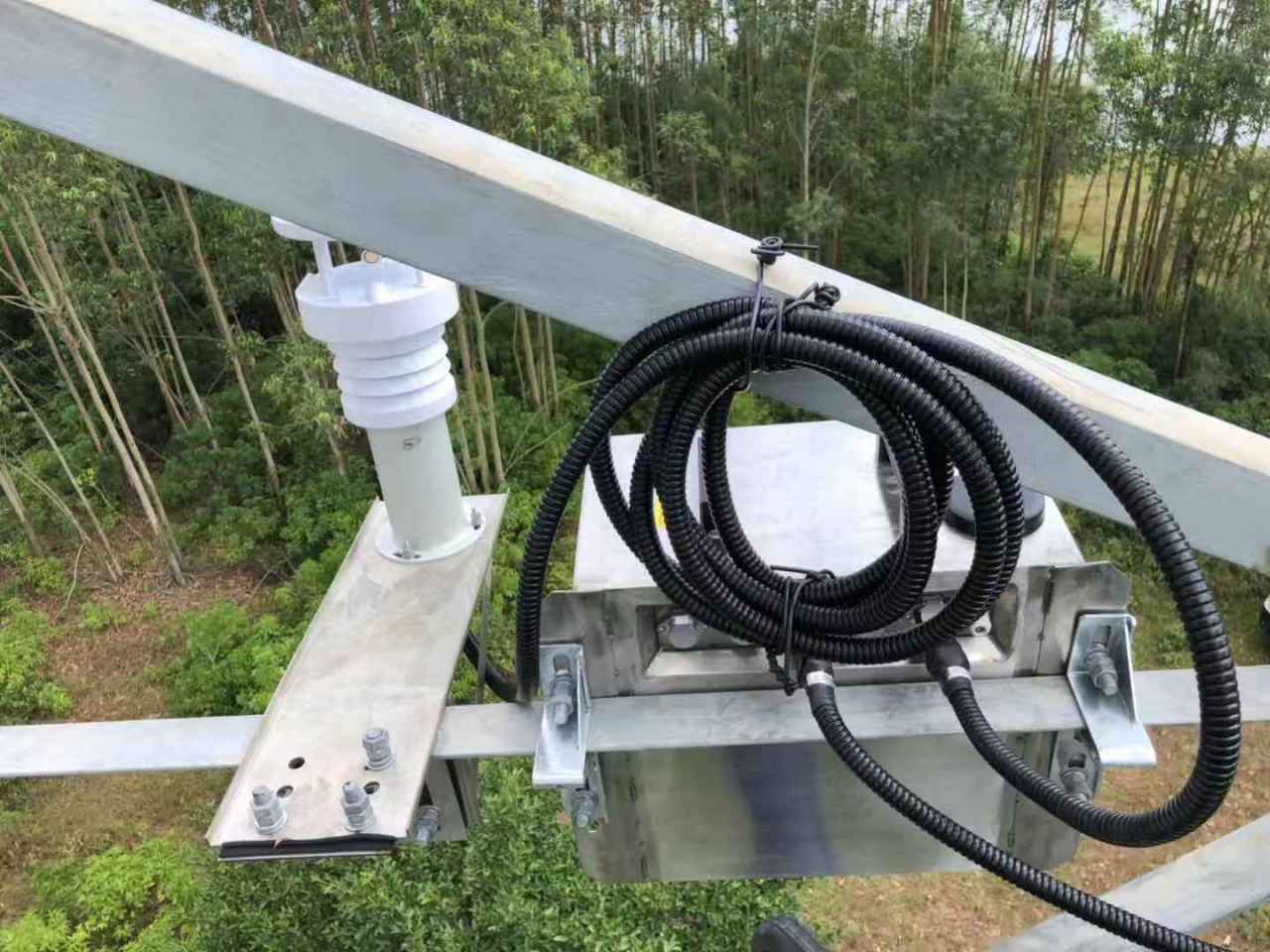 而開展在線監(jiān)測線路微氣象區(qū)域的微氣象狀況,對電力部門巡視、預(yù)防及檢修工作具有重要意義。為此廣西供電單位安裝了我司(深圳市特力康科技有限公司)自主研發(fā)的“輸電線路在線監(jiān)測-線路微氣象監(jiān)測裝置”該裝置通過實(shí)時(shí)監(jiān)測環(huán)境氣候變化情況,遇到線路氣象災(zāi)害時(shí)會(huì)及時(shí)預(yù)警并將氣象數(shù)據(jù)上傳至相關(guān)電力單位,供電單位可根據(jù)設(shè)備傳輸過來的氣象數(shù)據(jù)進(jìn)行分析從而對整個(gè)電力系統(tǒng)供電進(jìn)行調(diào)度,從而避免經(jīng)濟(jì)損失。