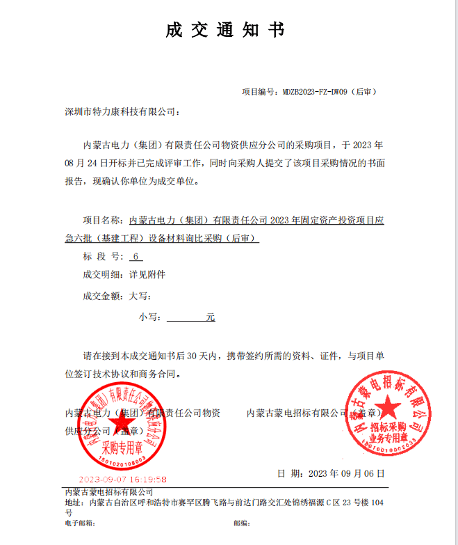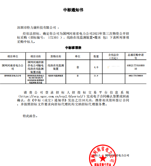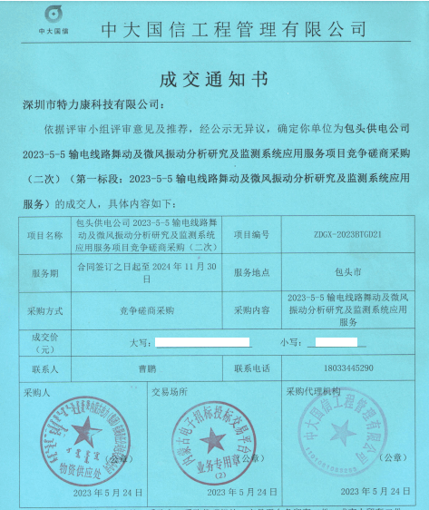 特力康中標國網(wǎng)黑龍江送變電工程公司的2024年度第18次物資類競爭性談判采購項目——慶陽驅(qū)鳥器物資框 特力康中標國網(wǎng)甘肅省電力公司省管產(chǎn)業(yè)單位2024年第五次物資競爭性談判授權(quán)采購項目 中標喜訊:深圳市特力康科技有限公司成功入圍許繼集團綜合能源公司輸電線路視頻在線監(jiān)測裝置模塊集采項目 中標喜訊:特力康成功中標國網(wǎng)重慶市電力公司渝中一片區(qū)項目 特力康成功中標國網(wǎng)天津市電力公司2024年第二次?物?資招標項目 特力康中標國網(wǎng)安徽省電力有限公司蕪湖供電公司2024年3月非物質(zhì)采購項目 電力安全新保障:深圳特力康測斜裝置助力安徽電力公司高效運維 四川電力公司應(yīng)用防山火紅外熱成像雙目攝像機,及時發(fā)現(xiàn)潛在的山火隱患 江西電力公司應(yīng)用輸電線路等值覆冰在線監(jiān)測,降低冰災(zāi)停電風險和經(jīng)濟損失 四川電力公司攜手深圳特力康:輸電防山火智慧監(jiān)控裝置成功上線運行 創(chuàng)新視角:深圳特力康線路氣象災(zāi)害監(jiān)測預(yù)警系統(tǒng)如何重塑浙江電力公司的線路防災(zāi)策略 河南電力公司應(yīng)用深圳特力康輸電線路桿塔傾斜在線監(jiān)測裝置,提高電網(wǎng)的安全性和穩(wěn)定性 寧夏配電線路安裝了我司防外破電子化智能警示牌