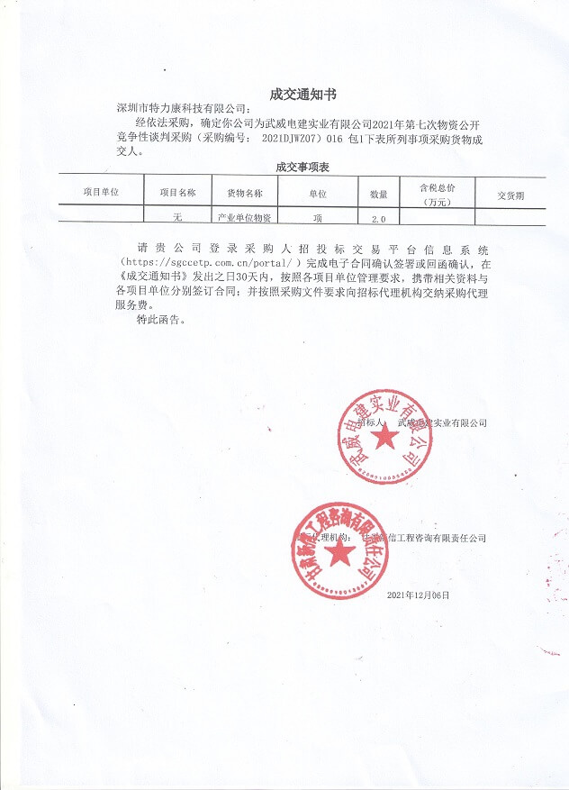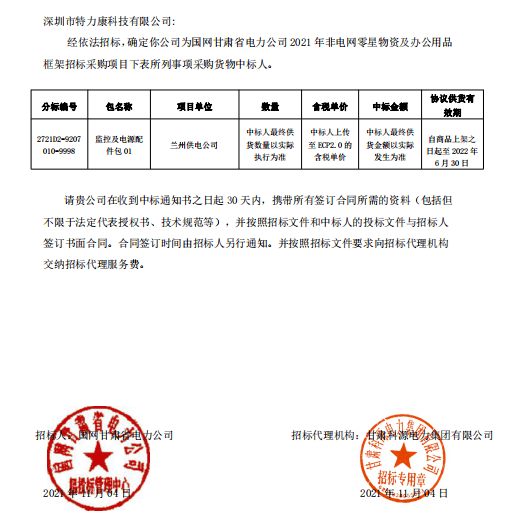 特力康中標(biāo)國網(wǎng)黑龍江送變電工程公司的2024年度第18次物資類競爭性談判采購項(xiàng)目——慶陽驅(qū)鳥器物資框 特力康中標(biāo)國網(wǎng)甘肅省電力公司省管產(chǎn)業(yè)單位2024年第五次物資競爭性談判授權(quán)采購項(xiàng)目 中標(biāo)喜訊:深圳市特力康科技有限公司成功入圍許繼集團(tuán)綜合能源公司輸電線路視頻在線監(jiān)測裝置模塊集采項(xiàng)目 中標(biāo)喜訊:特力康成功中標(biāo)國網(wǎng)重慶市電力公司渝中一片區(qū)項(xiàng)目 特力康成功中標(biāo)國網(wǎng)天津市電力公司2024年第二次?物?資招標(biāo)項(xiàng)目 特力康中標(biāo)國網(wǎng)安徽省電力有限公司蕪湖供電公司2024年3月非物質(zhì)采購項(xiàng)目 電力安全新保障:深圳特力康測斜裝置助力安徽電力公司高效運(yùn)維 四川電力公司應(yīng)用防山火紅外熱成像雙目攝像機(jī),及時(shí)發(fā)現(xiàn)潛在的山火隱患 江西電力公司應(yīng)用輸電線路等值覆冰在線監(jiān)測,降低冰災(zāi)停電風(fēng)險(xiǎn)和經(jīng)濟(jì)損失 四川電力公司攜手深圳特力康:輸電防山火智慧監(jiān)控裝置成功上線運(yùn)行 創(chuàng)新視角:深圳特力康線路氣象災(zāi)害監(jiān)測預(yù)警系統(tǒng)如何重塑浙江電力公司的線路防災(zāi)策略 河南電力公司應(yīng)用深圳特力康輸電線路桿塔傾斜在線監(jiān)測裝置,提高電網(wǎng)的安全性和穩(wěn)定性 寧夏配電線路安裝了我司防外破電子化智能警示牌