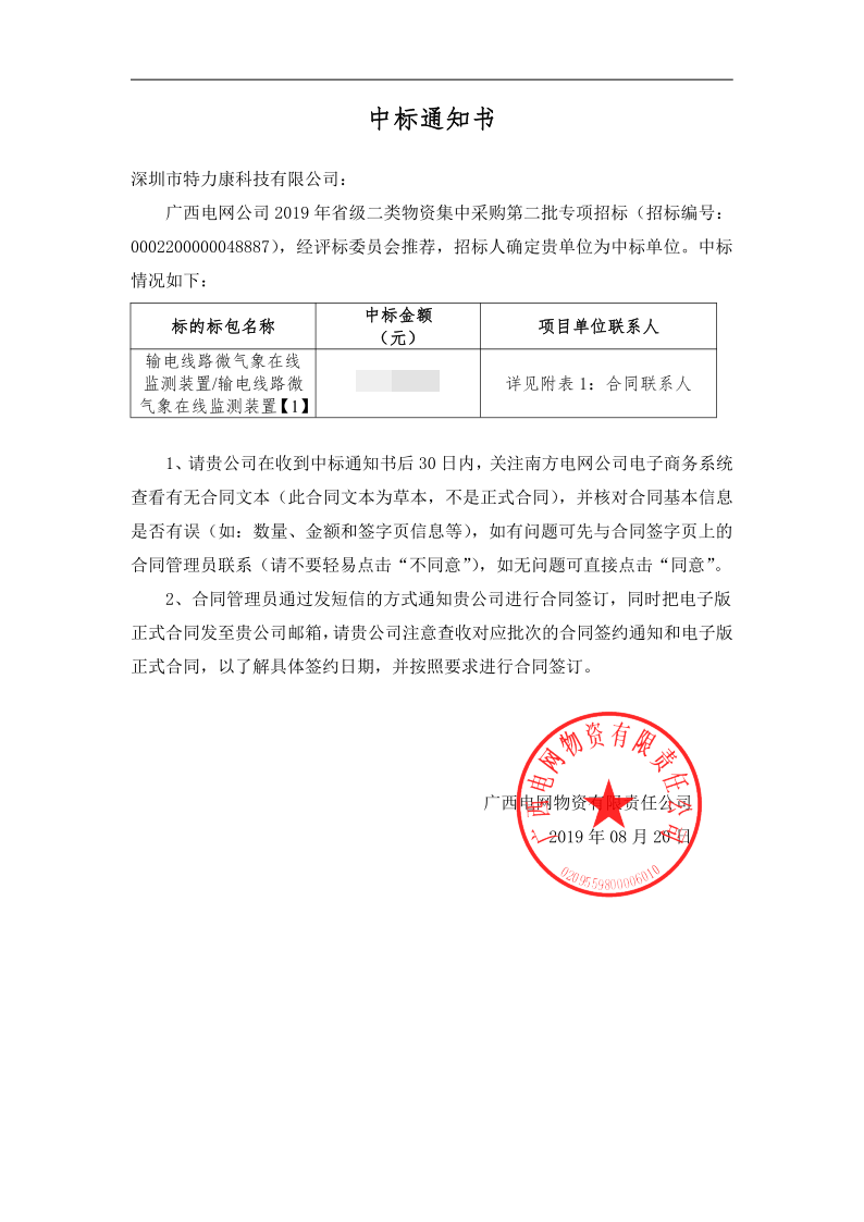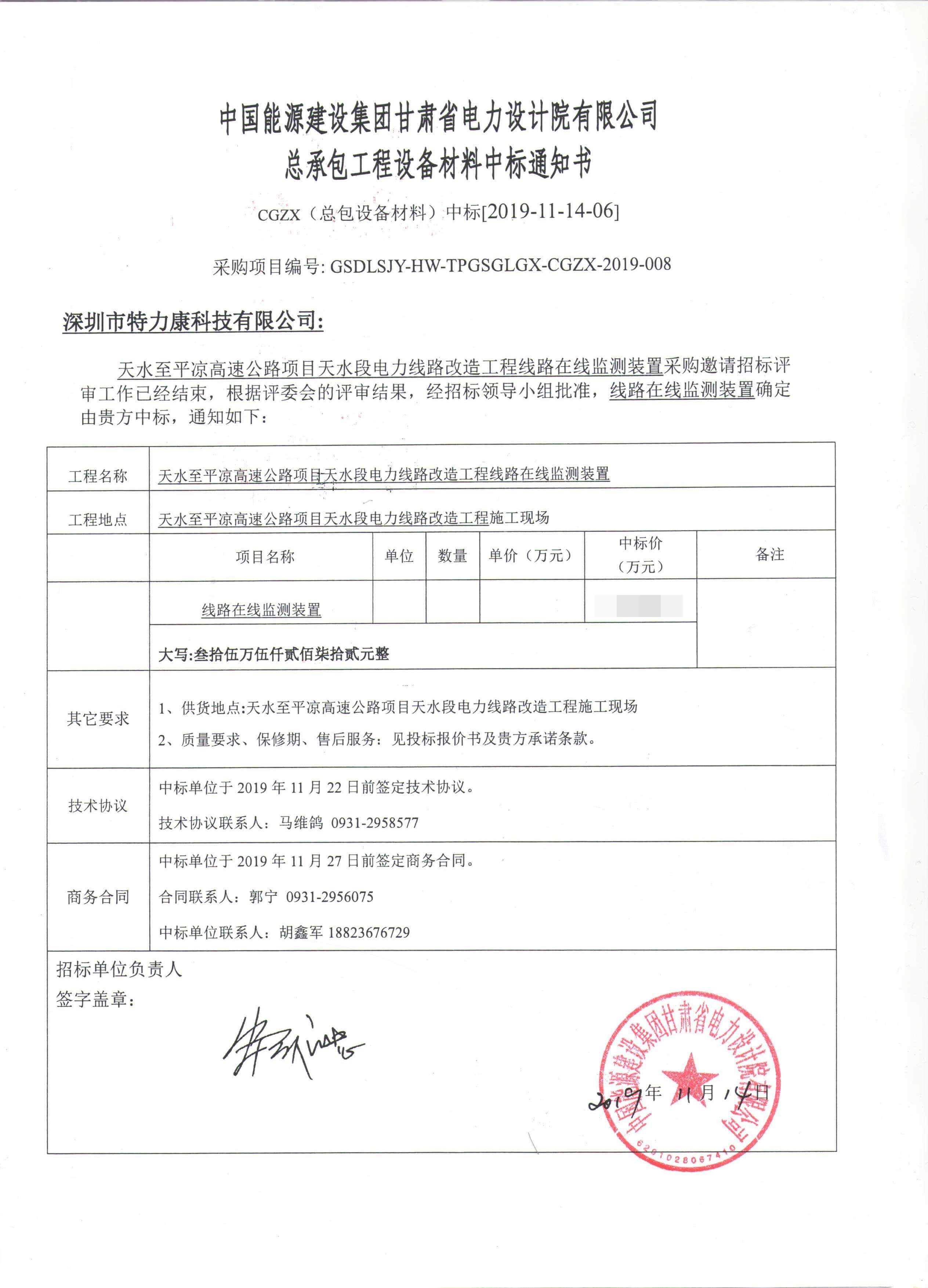特力康中標(biāo)國網(wǎng)黑龍江送變電工程公司的2024年度第18次物資類競爭性談判采購項(xiàng)目——慶陽驅(qū)鳥器物資框 特力康中標(biāo)國網(wǎng)甘肅省電力公司省管產(chǎn)業(yè)單位2024年第五次物資競爭性談判授權(quán)采購項(xiàng)目 中標(biāo)喜訊:深圳市特力康科技有限公司成功入圍許繼集團(tuán)綜合能源公司輸電線路視頻在線監(jiān)測裝置模塊集采項(xiàng)目 中標(biāo)喜訊:特力康成功中標(biāo)國網(wǎng)重慶市電力公司渝中一片區(qū)項(xiàng)目 特力康成功中標(biāo)國網(wǎng)天津市電力公司2024年第二次?物?資招標(biāo)項(xiàng)目 特力康中標(biāo)國網(wǎng)安徽省電力有限公司蕪湖供電公司2024年3月非物質(zhì)采購項(xiàng)目 深圳特力康電網(wǎng)微波覆冰在線監(jiān)測系統(tǒng):冰雪中的“無聲哨兵” 深圳特力康輸電線路氣象災(zāi)害監(jiān)測預(yù)警系統(tǒng):為電網(wǎng)編織“智慧防線” 深圳特力康電網(wǎng)架空輸電線路覆冰監(jiān)測系統(tǒng):守護(hù)銀線安全的"冰雪哨兵" 深圳特力康高壓輸電線路在線遠(yuǎn)程圖像系統(tǒng):為電網(wǎng)架設(shè)“智慧之眼 深圳特力康輸電線路激光防外力破壞在線監(jiān)測裝置:為電網(wǎng)架起“無形護(hù)盾” 甘肅送變電公司應(yīng)用深圳特力康輸電線路分布式故障診斷系統(tǒng):讓電網(wǎng)隱患“無處遁形” 寧夏配電線路安裝了我司防外破電子化智能警示牌
