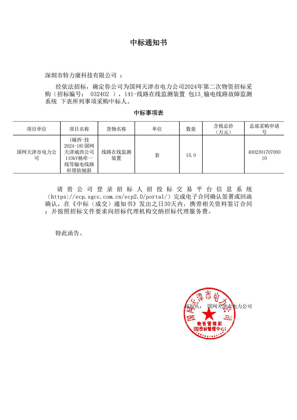 特力康中標國網(wǎng)黑龍江送變電工程公司的2024年度第18次物資類競爭性談判采購項目——慶陽驅鳥器物資框 特力康中標國網(wǎng)甘肅省電力公司省管產業(yè)單位2024年第五次物資競爭性談判授權采購項目 中標喜訊:深圳市特力康科技有限公司成功入圍許繼集團綜合能源公司輸電線路視頻在線監(jiān)測裝置模塊集采項目 中標喜訊:特力康成功中標國網(wǎng)重慶市電力公司渝中一片區(qū)項目 特力康成功中標國網(wǎng)天津市電力公司2024年第二次?物?資招標項目 特力康中標國網(wǎng)安徽省電力有限公司蕪湖供電公司2024年3月非物質采購項目 電力安全新保障:深圳特力康測斜裝置助力安徽電力公司高效運維 四川電力公司應用防山火紅外熱成像雙目攝像機,及時發(fā)現(xiàn)潛在的山火隱患 江西電力公司應用輸電線路等值覆冰在線監(jiān)測,降低冰災停電風險和經(jīng)濟損失 四川電力公司攜手深圳特力康:輸電防山火智慧監(jiān)控裝置成功上線運行 創(chuàng)新視角:深圳特力康線路氣象災害監(jiān)測預警系統(tǒng)如何重塑浙江電力公司的線路防災策略 河南電力公司應用深圳特力康輸電線路桿塔傾斜在線監(jiān)測裝置,提高電網(wǎng)的安全性和穩(wěn)定性 寧夏配電線路安裝了我司防外破電子化智能警示牌